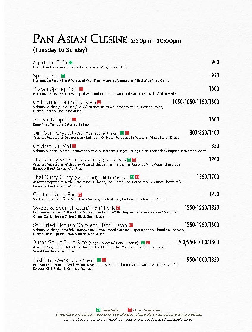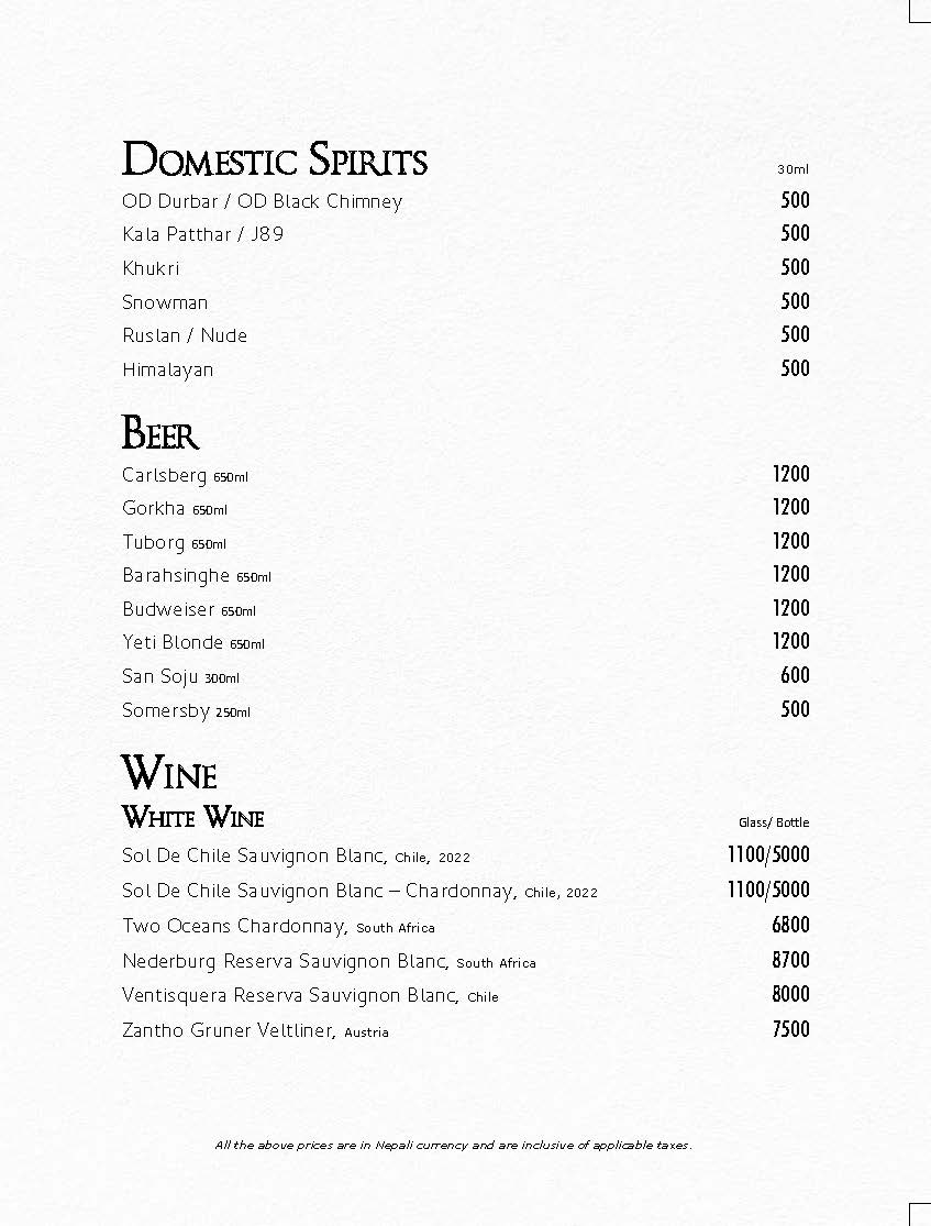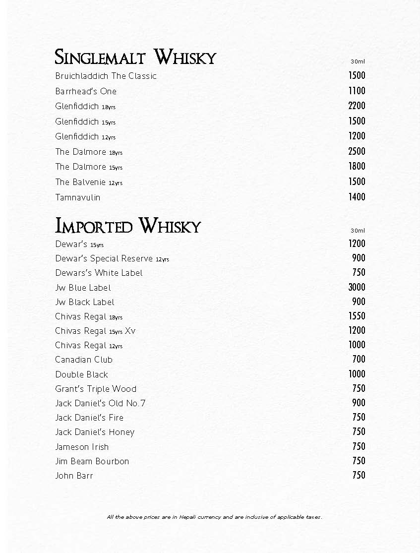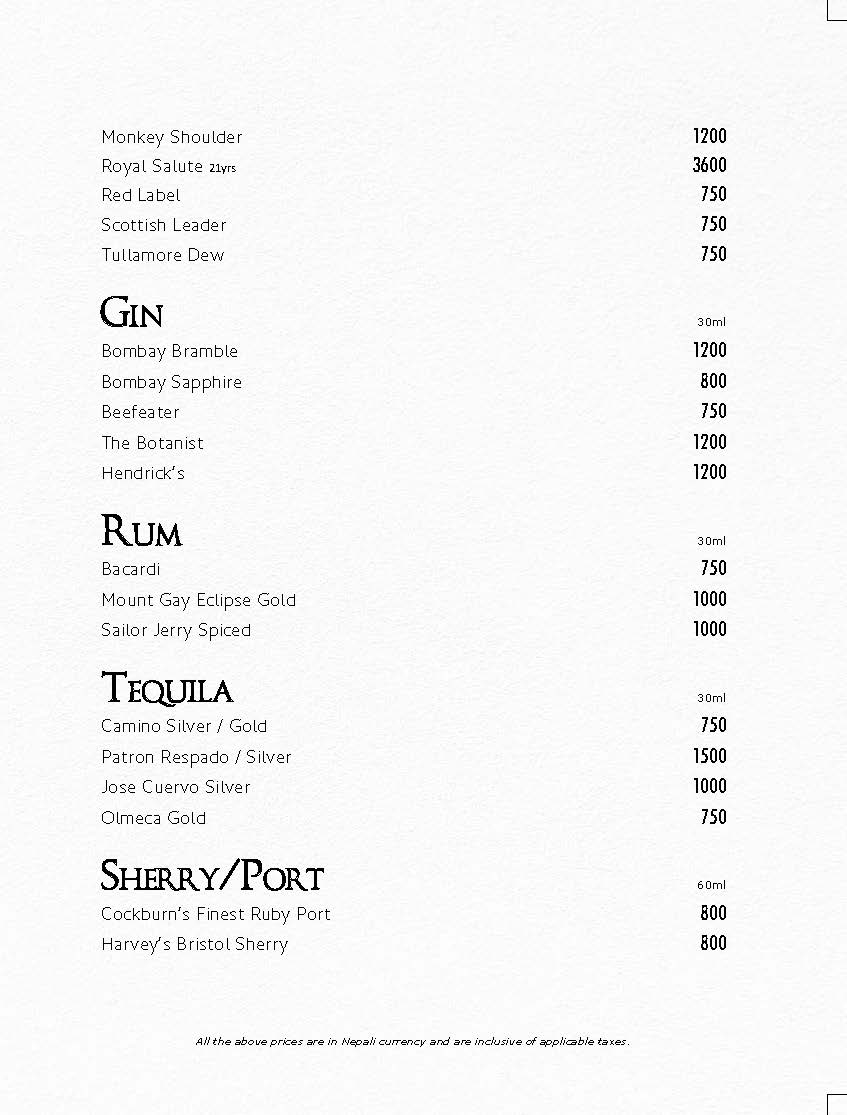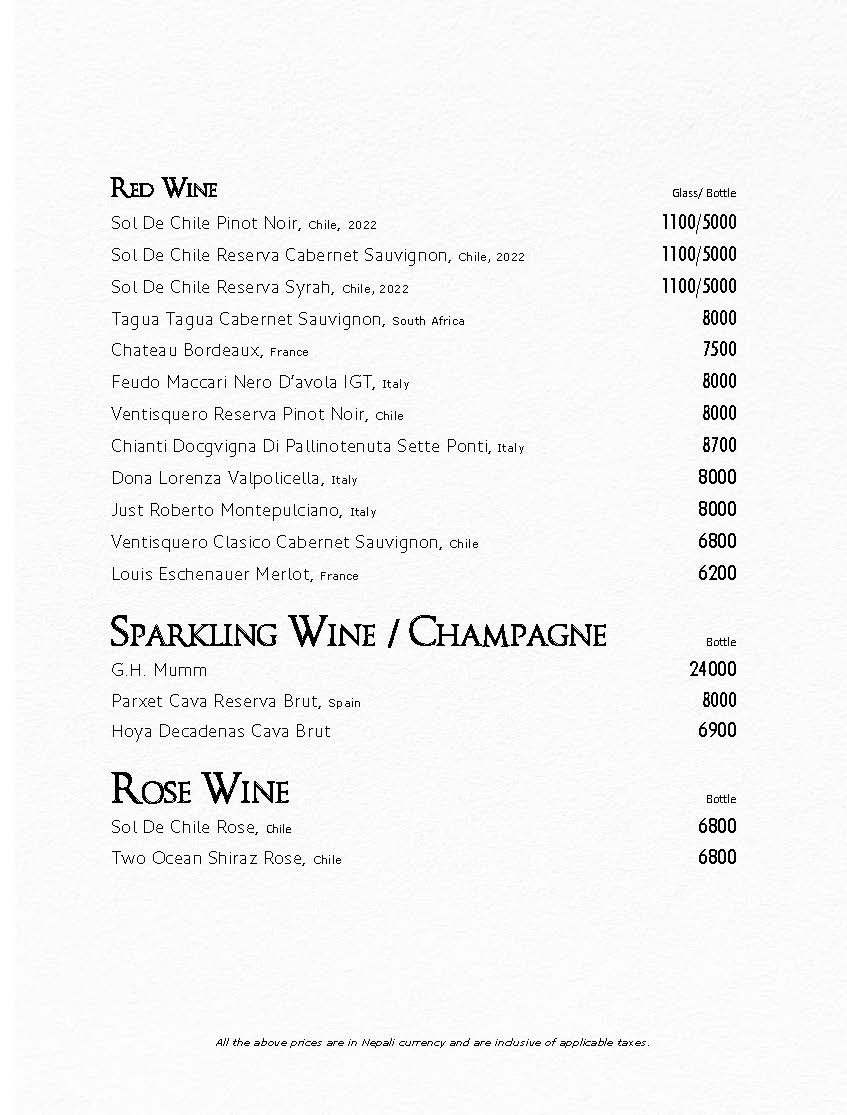 In Room Dining Menu